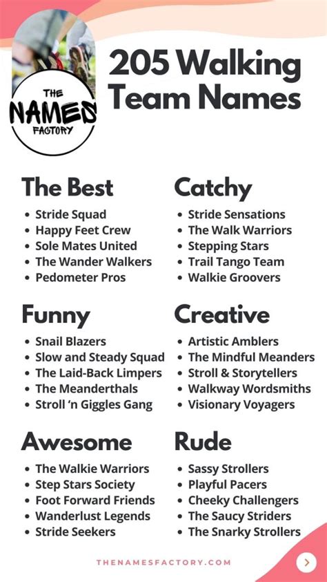Read Online creative team names for walking challenge Library Binding
